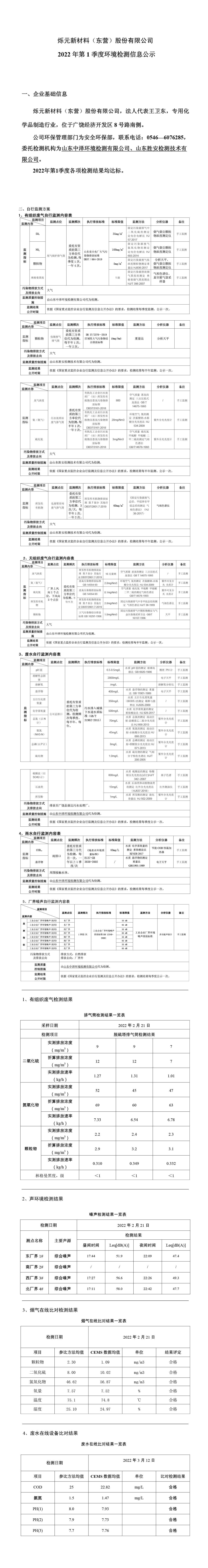 2022年第(dì)1季度環境檢測(cè)信息公示