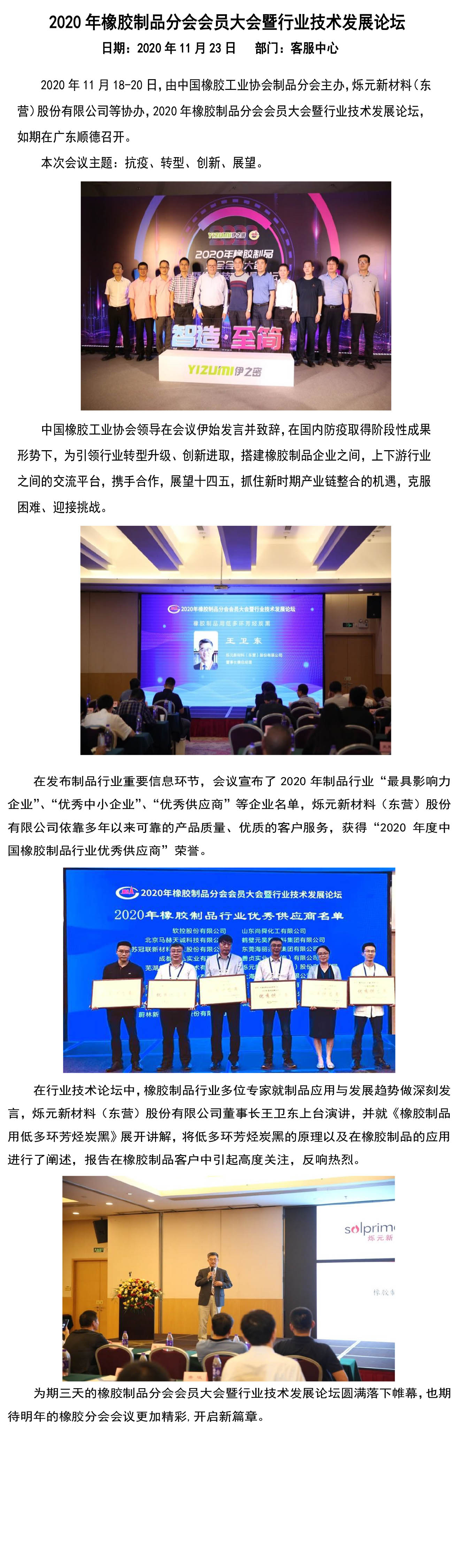 2020年橡(xiàng)膠制品分會會(huì)員大會暨行業(ye)技術發展論壇(tan)☀️