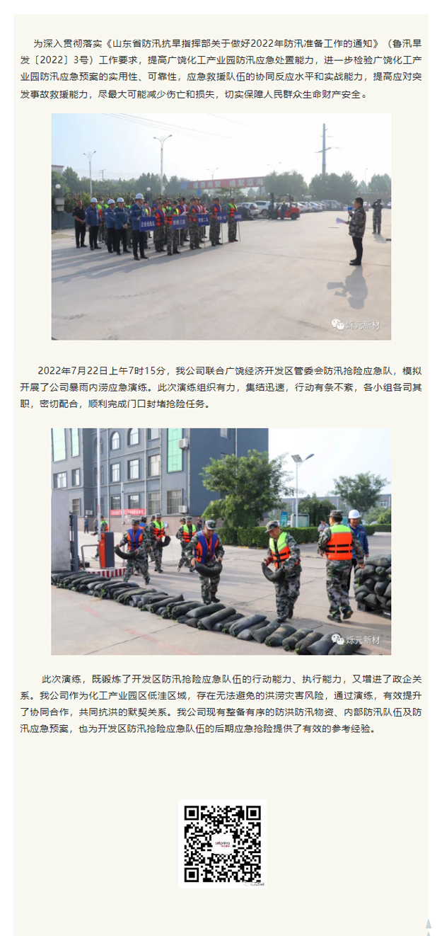 我(wǒ)公司與廣饒(ráo)化工産業園(yuan)組織聯合防(fáng)汛應急演練(lian)