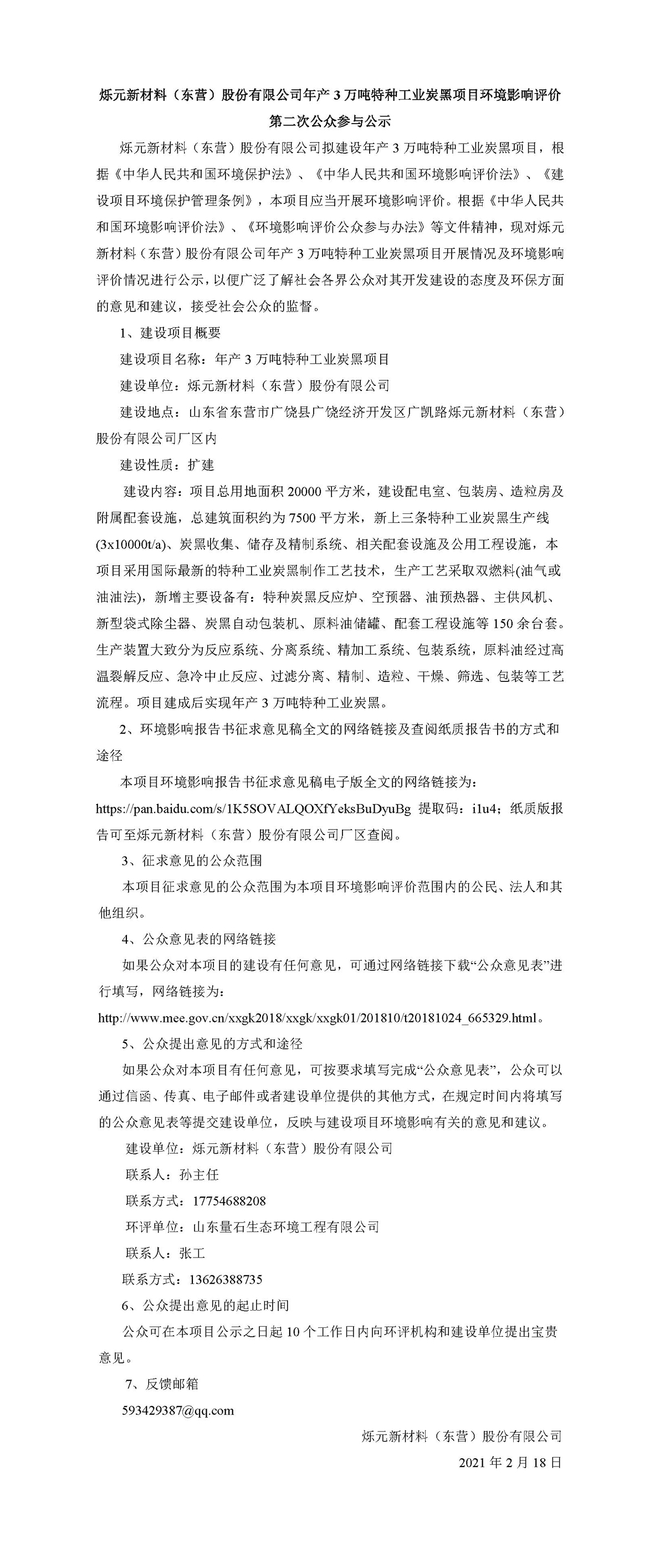 公(gōng)司年産3萬噸特種(zhong)工業炭黑項目環(huan)境影響評價第二(èr)❄️次公💋示