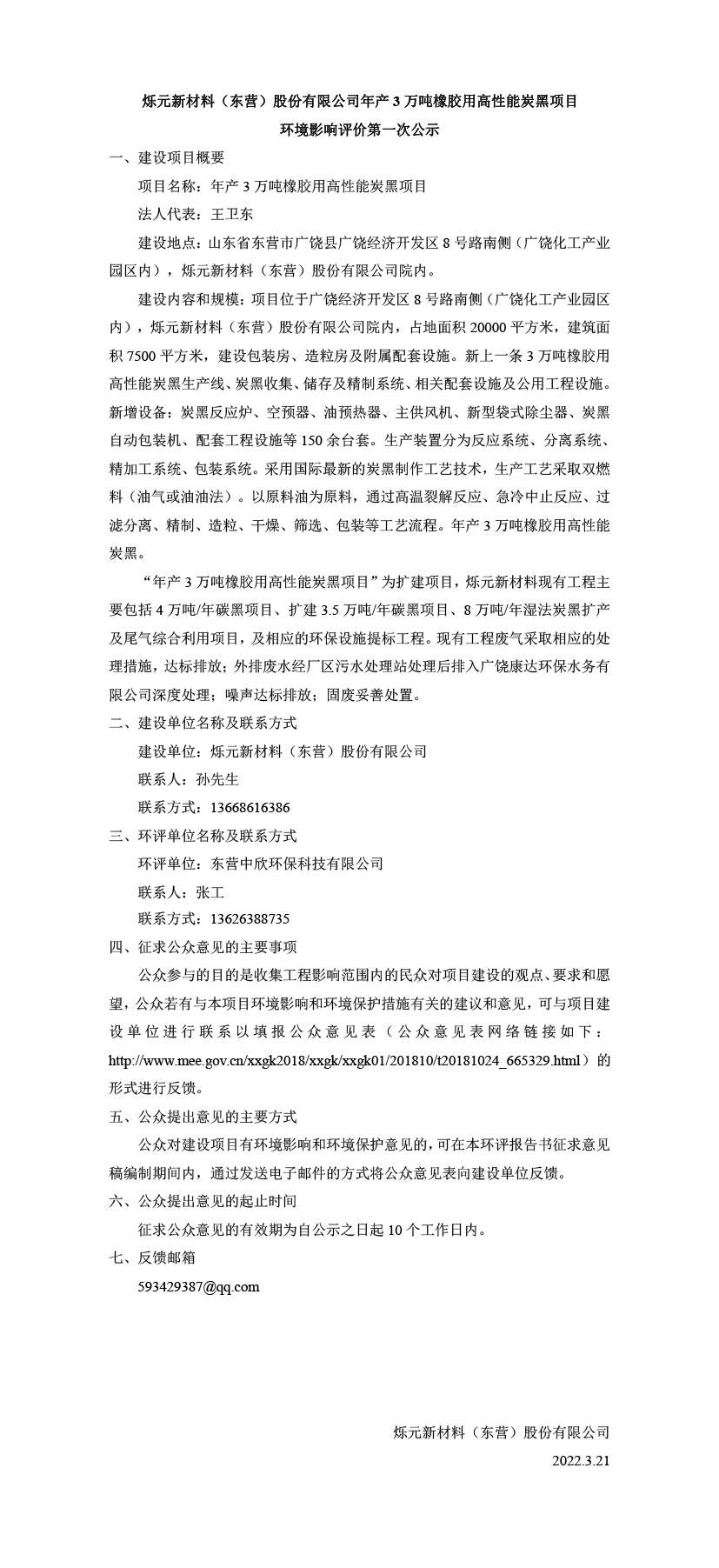 年(nian)産3萬噸橡膠用高(gao)性能炭黑項目環(huan)境影響評價第一(yī)次公示👄